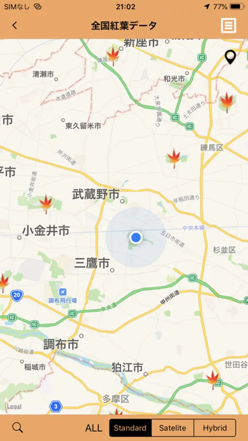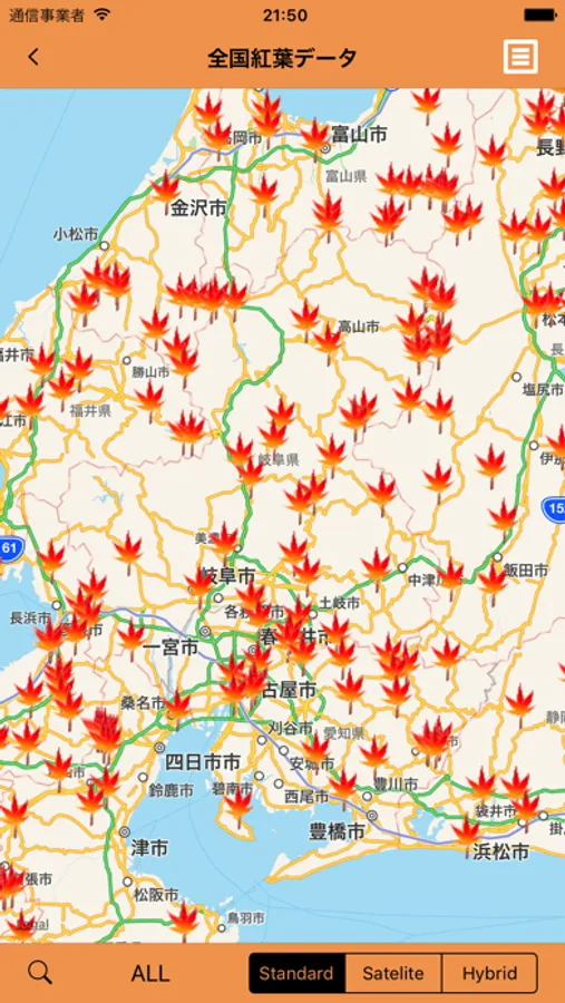 インターネット上で評判となっている紅葉スポットデータマップ全国版です。