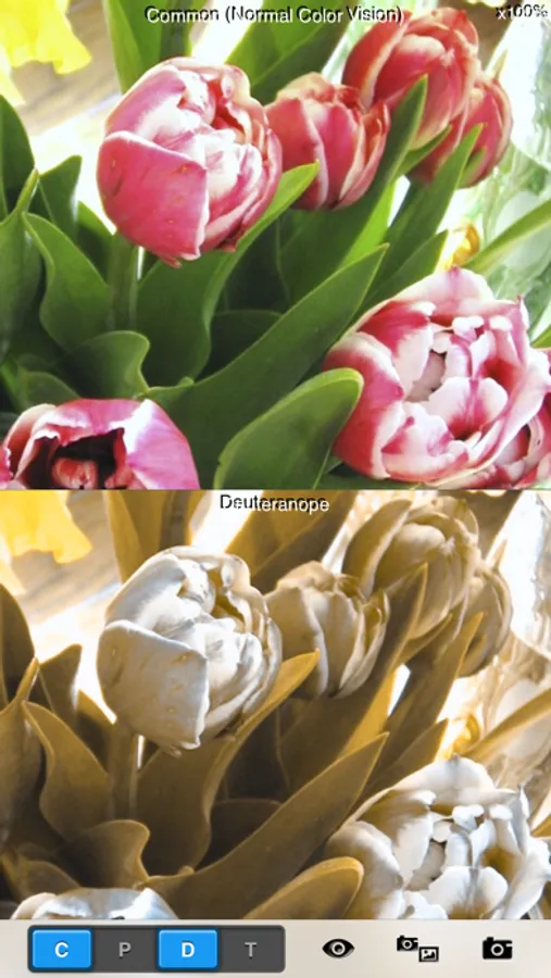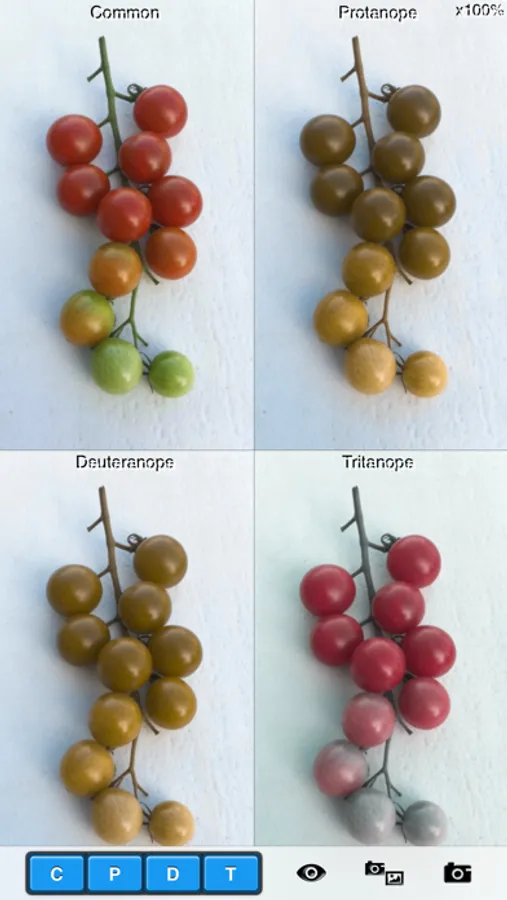 "Chromatic Vision Simulator" makes simulated images of each color vision type from built-in Camera or Photos and shows you how people with specific types of color vision sees the world in real-time.