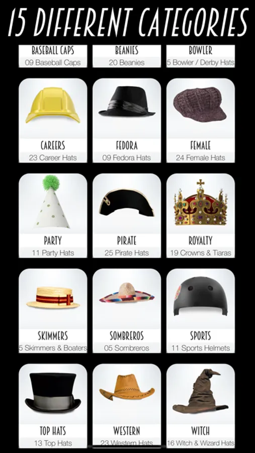 Simply load any photo into Hat Booth and start adding hats to the photo using simple touch and adjust logic. Load a photo from your photo album or take a new photo with the built in camera. Then scroll through all the hats, when you find one you want to try on simply tap the hat and it is added to your photo. You can adjust the placement, size and rotation of the hat so it will match your picture perfectly.