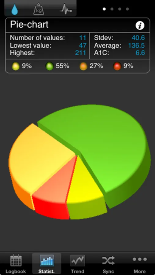- lots of statistic-graphics (pie chart, line graph, modal day and detailed statistic)
