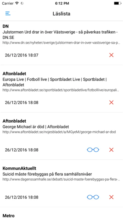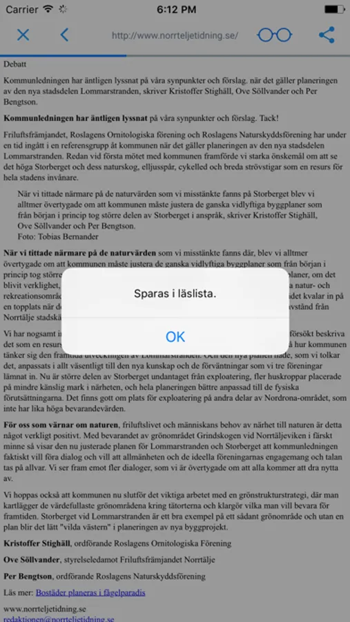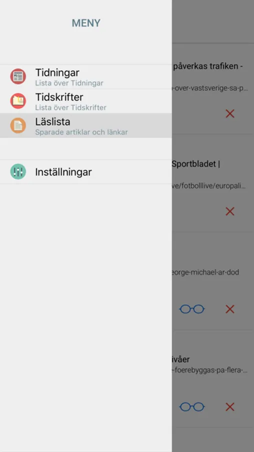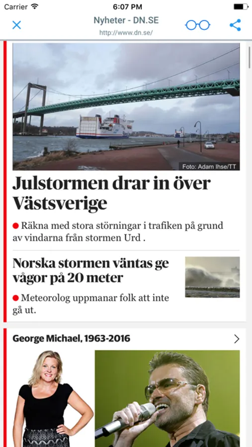 Dela nyheter och artiklar med e-post, Facebook och Twitter.
