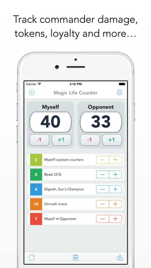 The app helps you track anything you want during duels and multiplayer Magic: the Gathering matches. Want to track life? Poison counters? Commander damage? Tokens? Planeswalker’s loyalty? Anything? It’s painless when you’re using Magic Life Counter! No more notepads and dice!