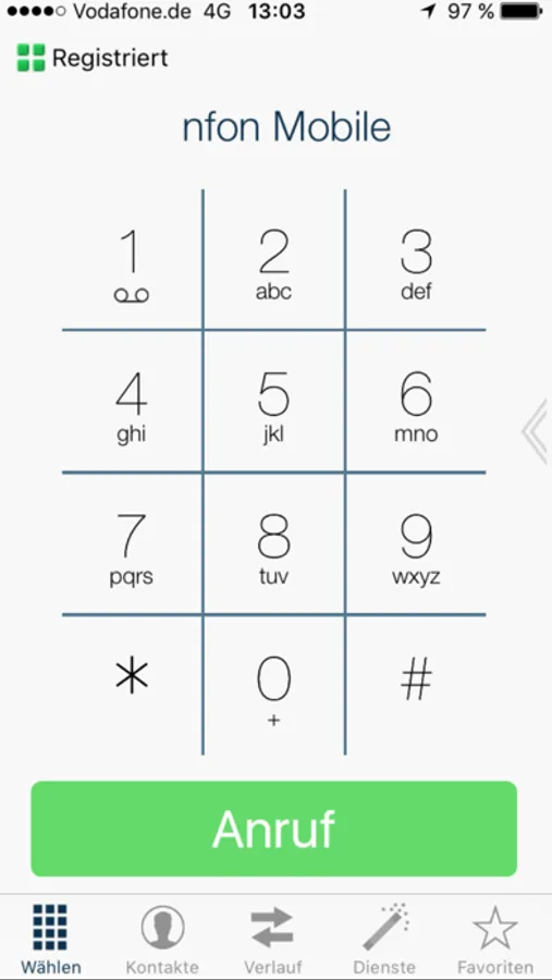 Nun telefonieren Sie auch mobil mit Ihrer Festnetznummer (Büronummer). So erübrigt sich auch die Kommunikation Ihrer privaten Mobilfunknummer, denn zukünftig besitzen Sie zwei "Identitäten" auf Ihrem iPhone. Sie können damit viele Funktionen der NFON Cloud-Telefonanlage auch mobil nutzen (es sieht bspw. Ihre Sekretärin über die Besetzt-Feld-Lampen am Bürotelefon, ob Sie gerade mobil telefonieren).