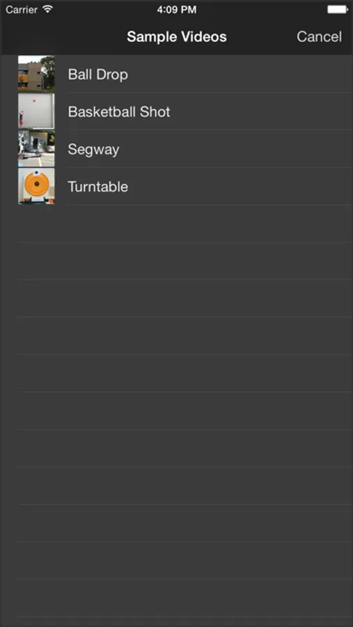 • Capture a new video using the built-in camera, choose a video from your Photo Library, or use one of our sample videos