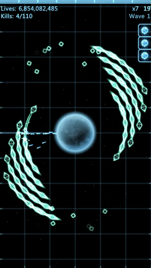 - Planet cannon: tap and drag from the planet to aim, release to fire