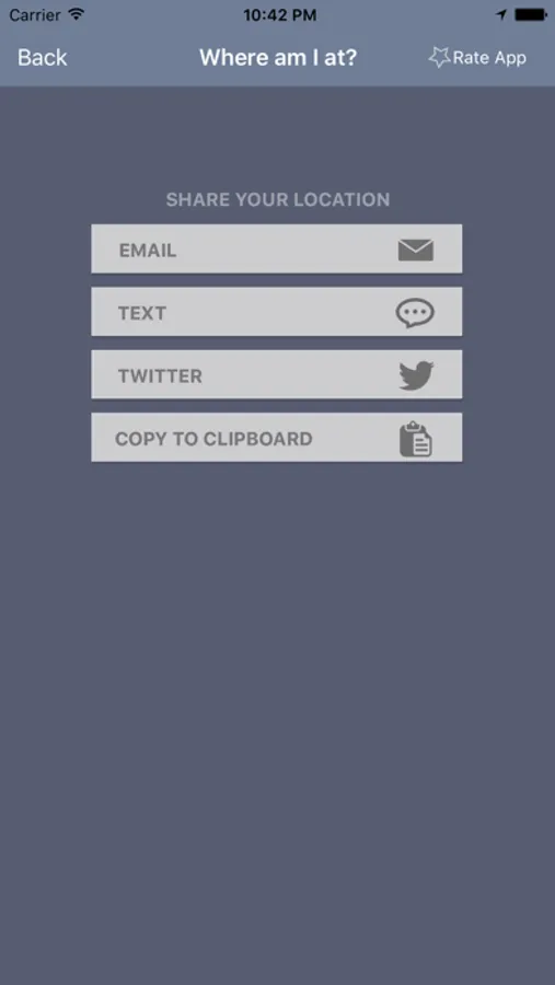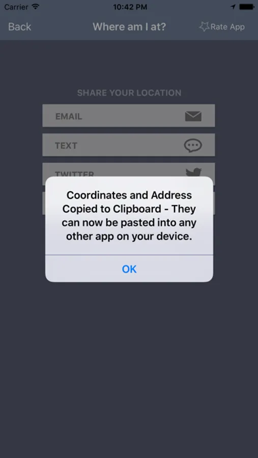 - Share your location on Twitter, by email, or through text/iMessage without leaving the app.