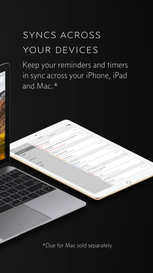Use iCloud or Dropbox to keep your reminders and timers in sync across your iPhone, iPad and Mac.