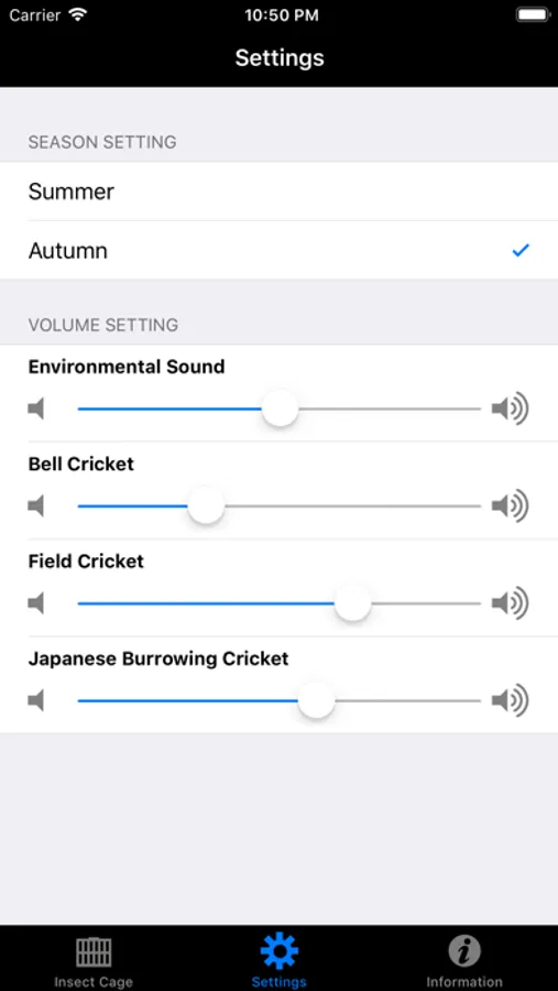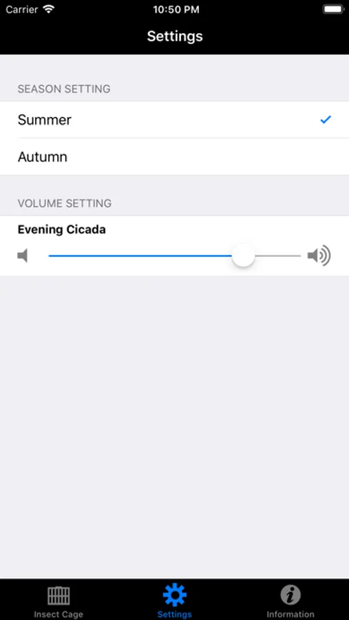 Insect cage is an app that hear the sound of insects. It contains 4 kinds of insects. Put your iPhone on the corner of your room, and enjoy the song of insects.