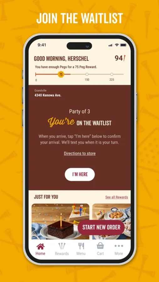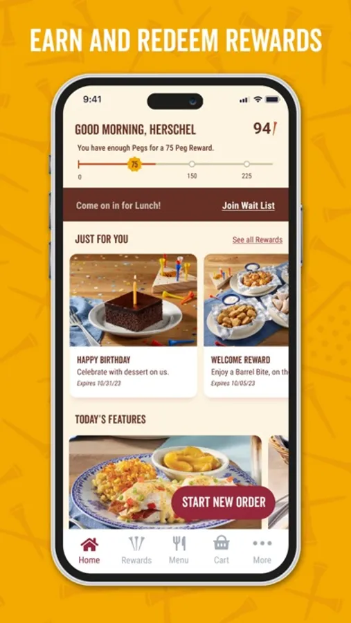 The all new Cracker Barrel app offers even more convenience. You can join the waitlist, pay for your dine-in meal, and order to-go all from your phone!