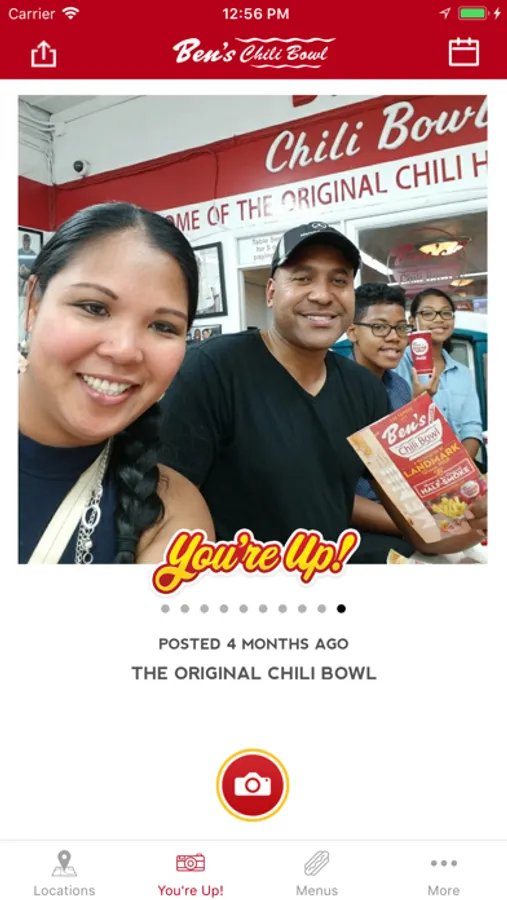 The app allows you to take a selfie while you're at one of our locations, enjoying a moment at Ben's. Then within seconds your photo is posted up on the big screen on the wall of each or all of our locations, right next to Ben's other favorite and famous customers.