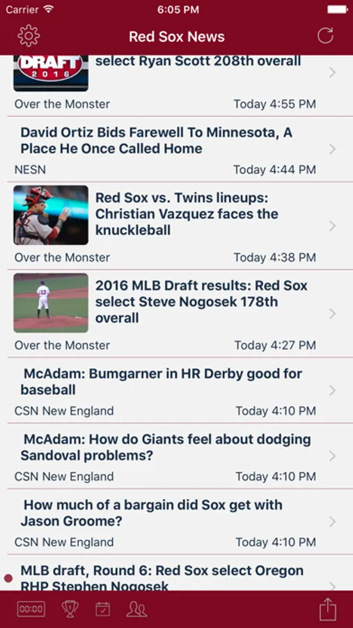 Get fast and reliable news for the Boston Red Sox from over a dozen sources! Read inside the app, in your browser, and e-mail or Tweet links to your family and friends.