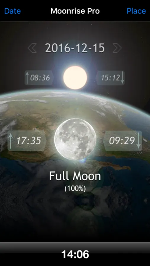 The application instantly shows the appearance and events for your iPhone's current location, and you can quickly check any location in the world using the map view. Perfect for fishing or hunting trips, or astronomers and astrologers.