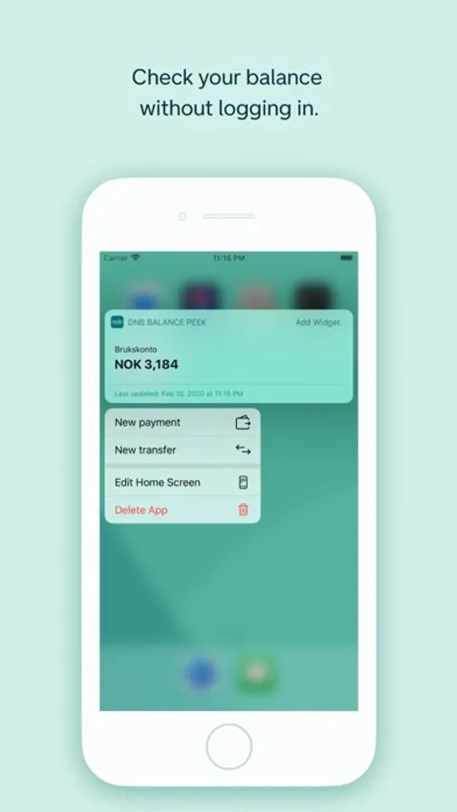 - DNB Balance Peek (widget) – check your account balances without logging in to the app.