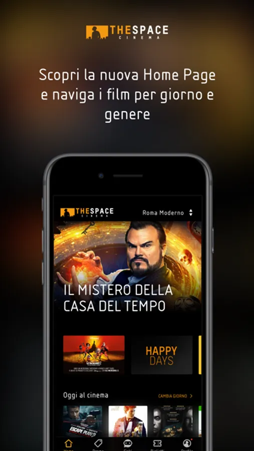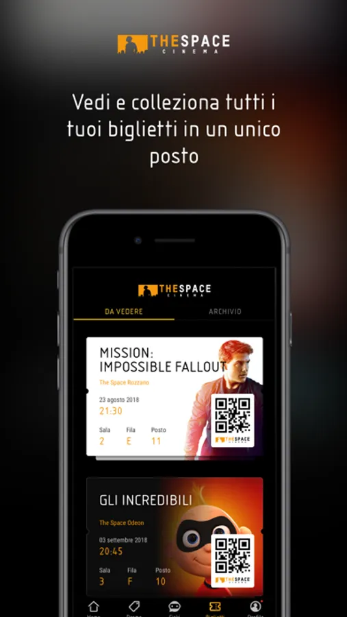 - Consultare l’archivio dei tuoi biglietti e vedere lo storico dei film che hai guardato con The Space Cinema