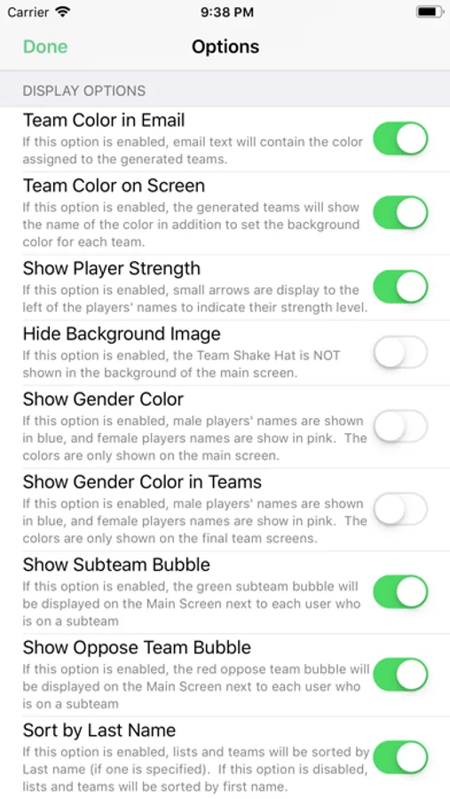 * Subteams / Oppose teams can now be enabled or disabled globally so that teams can be made quickly without subteams / oppose teams. In particular, Balance Teams Strengths will work when separate Male / Female teams are created.