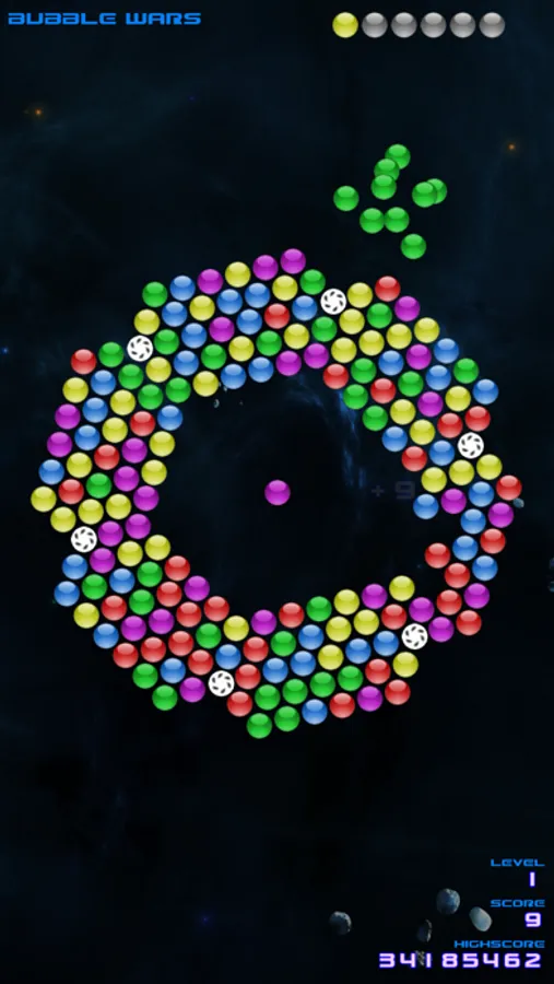 Make a combination of 3 or more bubbles with same color to make them explode! To make it more exciting, the entire army of bubbles sits on a spinning ring full of bubbles. Each time you shoot the bubbles, the bubble ring spins, thus changing the dynamics of your strategy in real time. Challenge your hunger and test your skills to shoot, pop and defeat the army of bubbles in Bubble Wars..