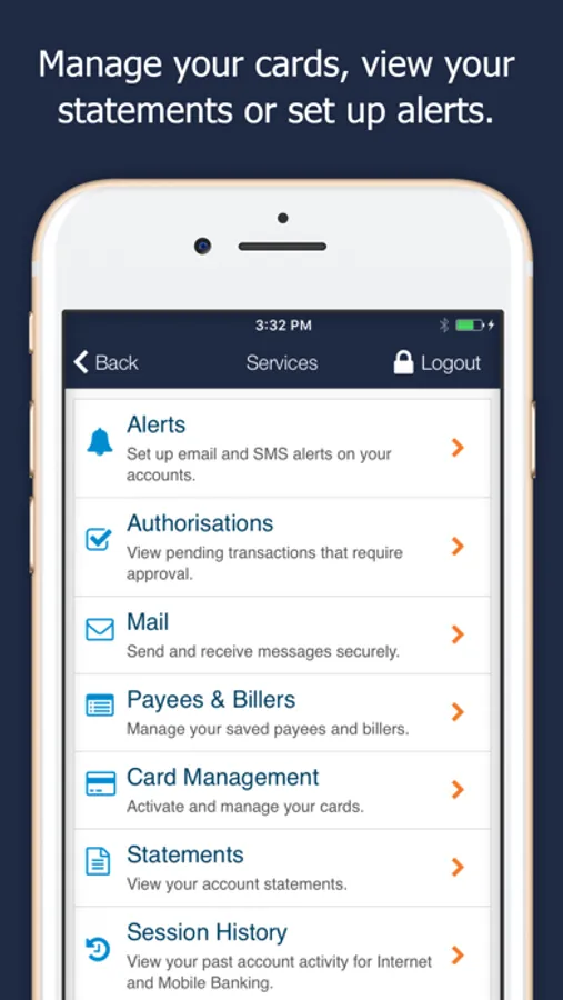 - Set up transaction alerts, activate your cards, lock/unlock your cards , manage your payees and billers
