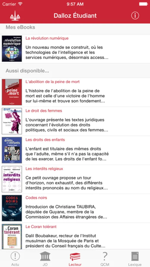 L’application iPhone Dalloz Étudiant permet d’accéder gratuitement :