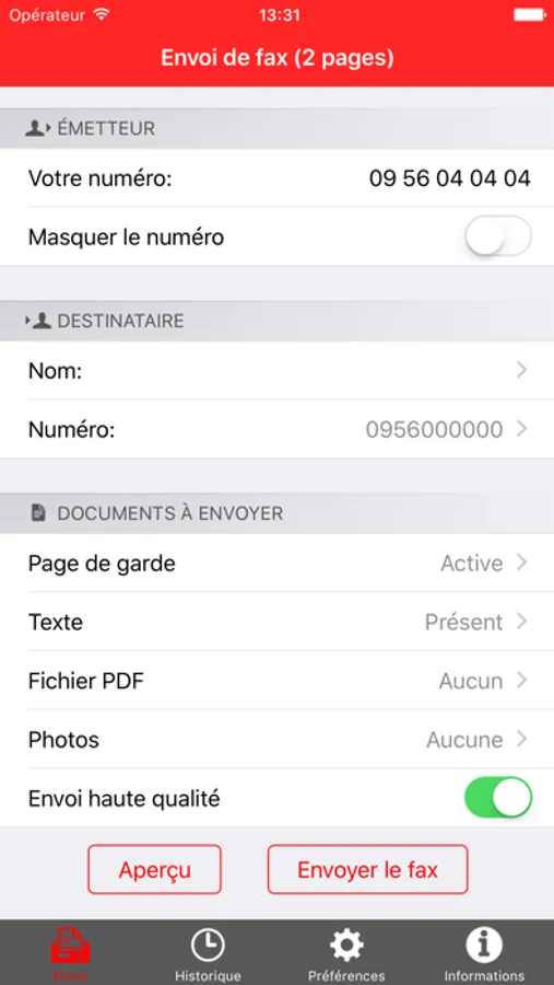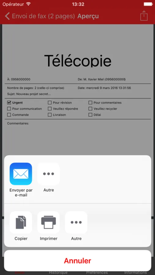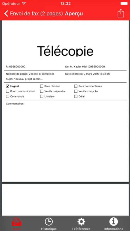 Grâce à Fax for Freebox vous pouvez envoyer textes, photos et fichiers PDF. Ceux-ci seront automatiquement transformés en fax pour votre correspondant.