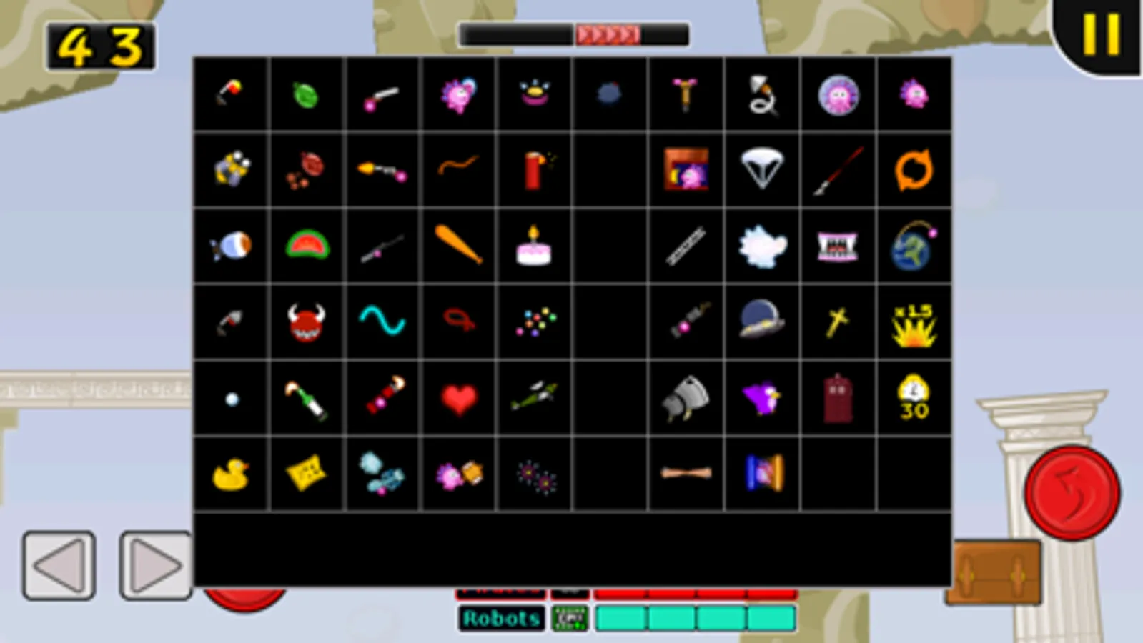 * Utilise 55 (and counting) devastating weapons! Defeat your foes with simple weapons like Grenades or take it to the next level and trash entire landscapes with weapons like the Melon Bomb or Piano Strike