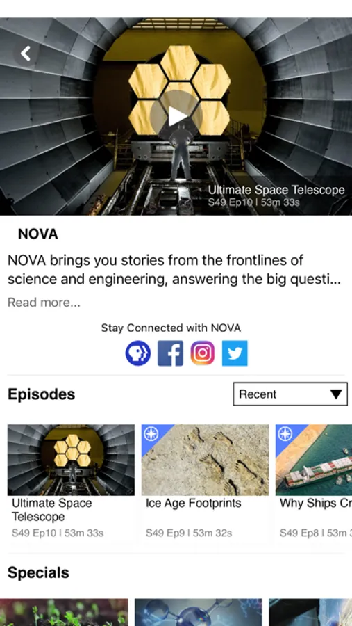 • Easily share stories and programs with family and friends via the “Share” button.