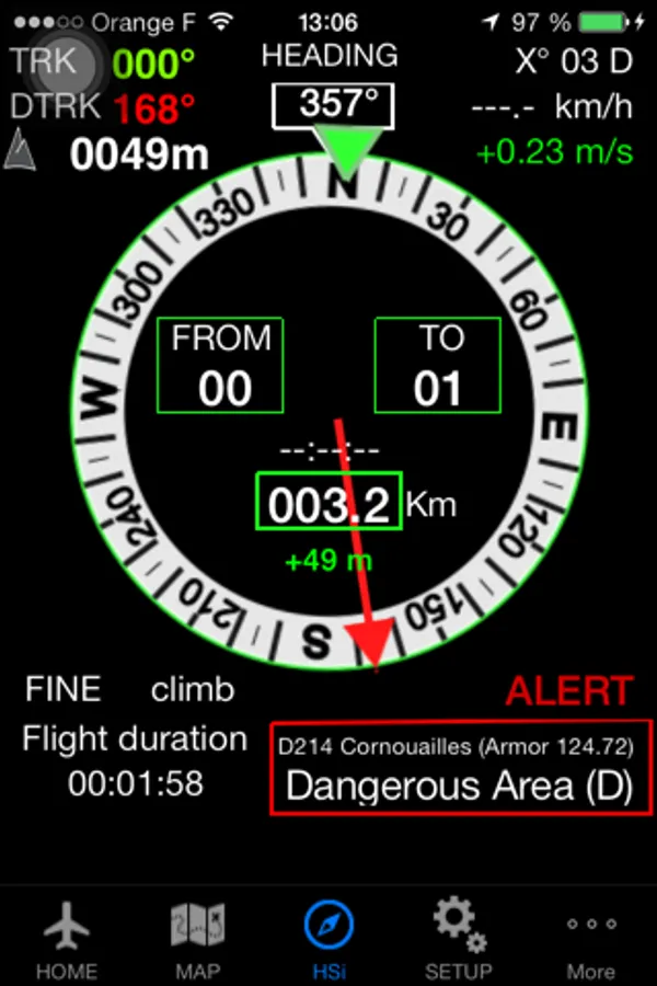 - Have a Graphic variometer with sound alert for thermic area (climbing rate upper than 0.5 m/s).