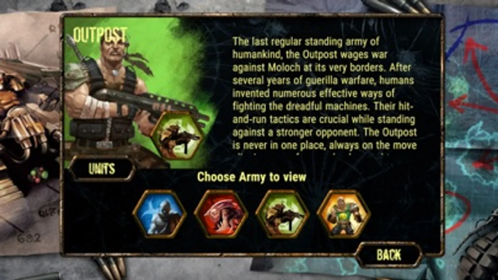 Control an army struggling for survival in the post-apocalyptic world. Choose one of the 4 unique factions—Moloch, Borgo, The Outpost, The Hegemony—and defeat your opponent in tactical warfare. Play solo against an AI opponent or against a human player in an asynchronous cross-platform multiplayer mode.