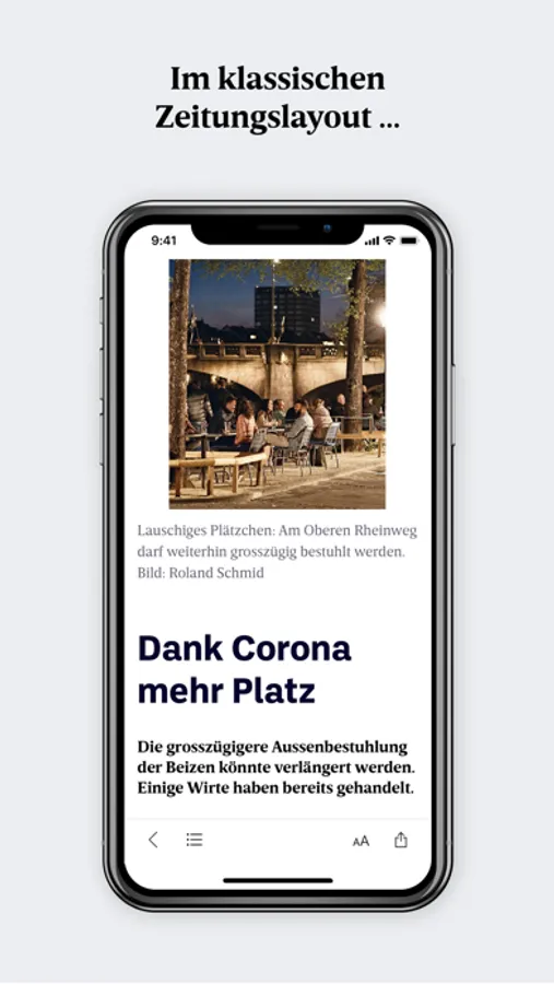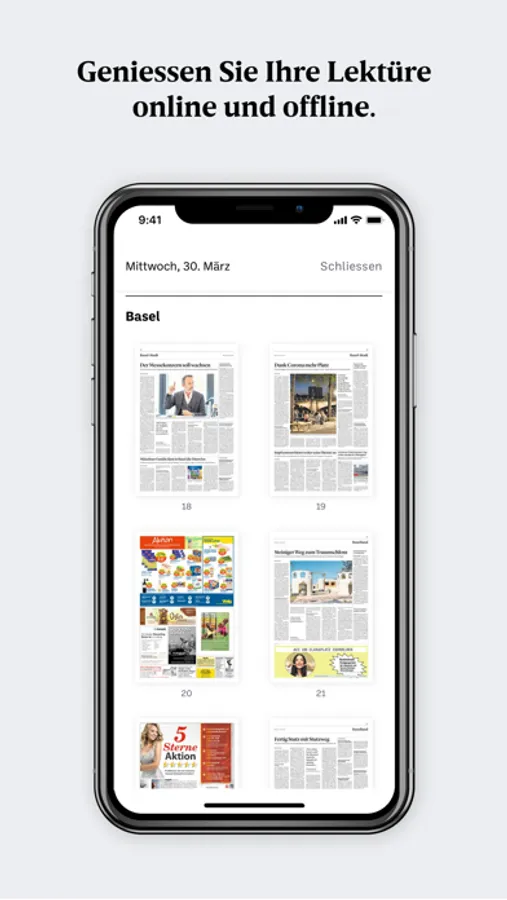 Die «bz Basel» steht täglich bereits ab 4 Uhr morgens in der E-Paper-App bereit. Die Ausgabe wird wahlweise automatisch oder manuell heruntergeladen. Sobald die aktuelle Ausgabe heruntergeladen ist, lesen Sie diese auch ohne Internetverbindung, zuhause oder unterwegs.