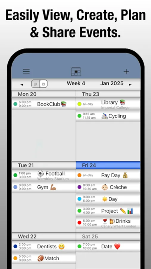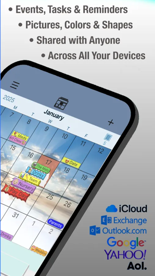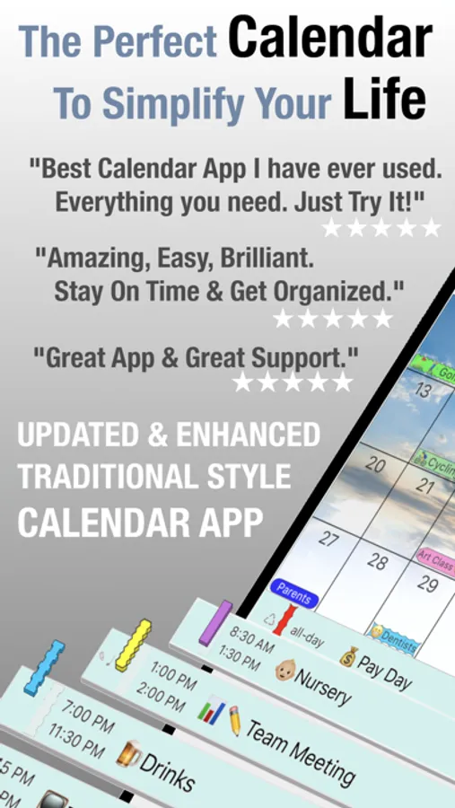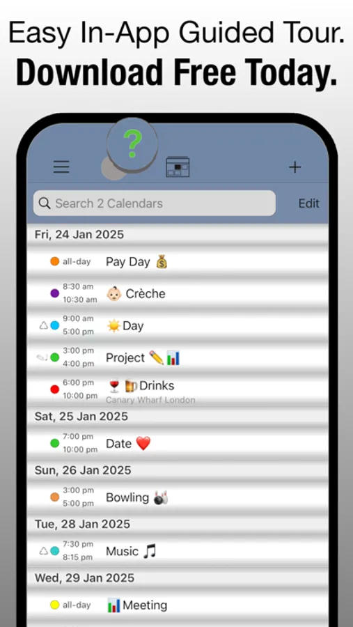 Simply download the app and all your calendars will automatically be there ready for you. No further set up is required. You will also be able to switch between the native Calendar app and CalendarLife and your events will always be in sync.