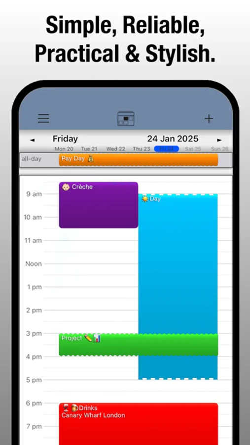 CalendarLife uses your device's native database to display your events in a fully customisable and much more user friendly way. This means your events sync automatically.