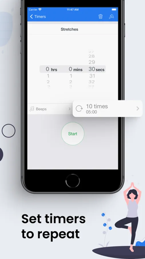 Create, label and reuse timers for anything – yoga stretches, timed quizzes, cooking rice, napping, therapeutic treatments or remembering to take your pills.