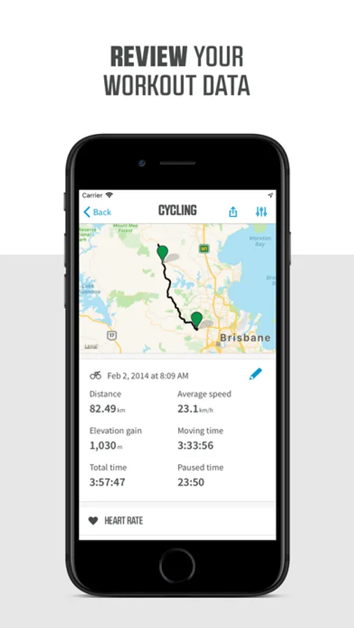 ◇ Review your History. See a summary of the results from your entire workout history, including GPS route, organized by date and workout type in the history tab.