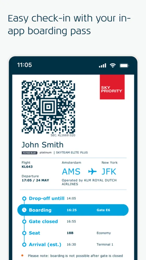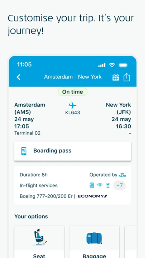 View the pre-travel checklist and adjust your booking at any time until check-in. Lounge access or extra legroom? Enhance your travel experience yourself with just a few taps.