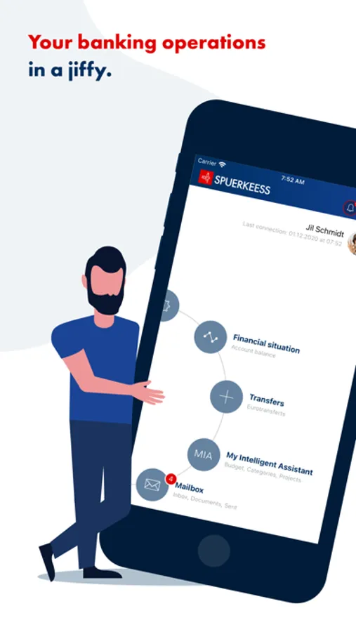 • send secure messages to the Spuerkeess and access your received mail and documents,