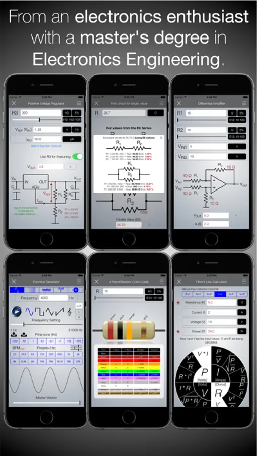 From an electronics enthusiast with a master's degree in Electronics Engineering. This App is for engineers, students and hobbyists and anyone interested in Electronics Engineering.