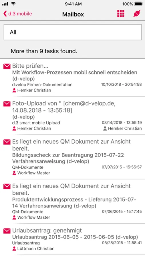 Make decisions even when away from the office. You do n/ot have to rely on your gut feeling, but can instead consider all relevant information. Whether it’s offers, correspondence, e-mails, memos, spreadsheets, drawings or in- and outbound invoices – d.3 smart mobile provides you with access to this information anytime and anywhere – simply and reliably!