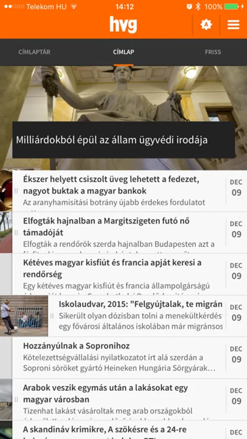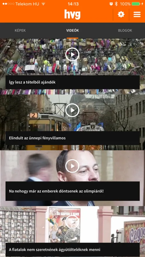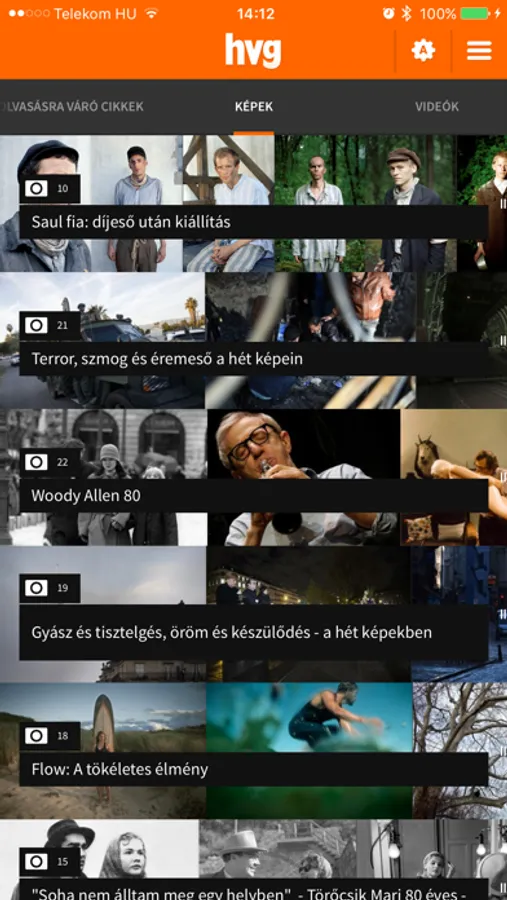 A cikkeken, híreken kívül külön menüpontban megtalálhatja a HVG.hu-ról jól ismert Nagyítás képgalériákat, ahol a szöveg helyett a nagy felbontású fotók mutatják be a híreket. A még nagyobb felbontásért érdemes elfordítani a készüléket.