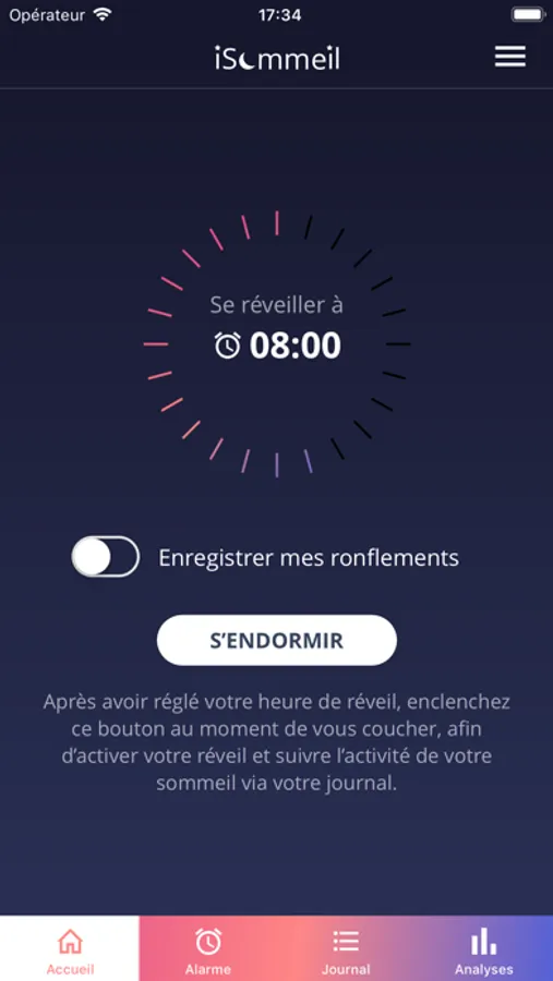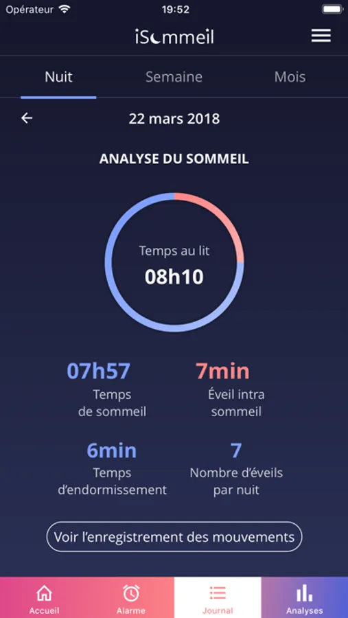Cette application permet de mieux connaitre votre sommeil et de faire de votre mobile un allié pour mieux dormir en vous accompagnant tout au long de vos nuits.