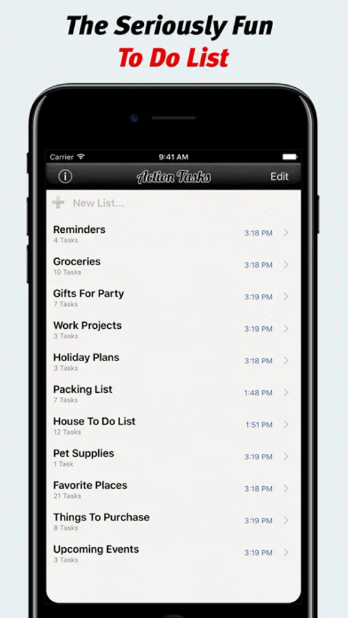Action Tasks is an artisanal to do list app that makes completing your tasks fun and rewarding with action sounds and force feedback.