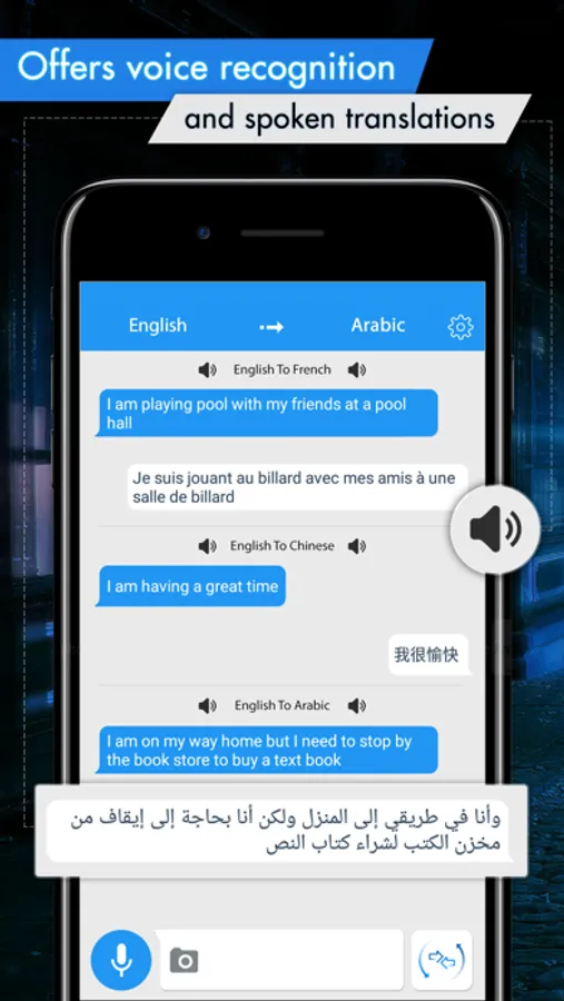 -Optional speech to text allows you to record your text in 23 languages and convert it into any of the many listed languages.