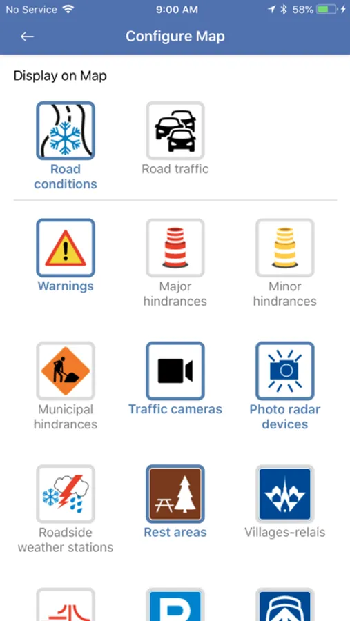 Additionally, you can enable alerts to receive notifications on current warnings, roadwork and general messages.