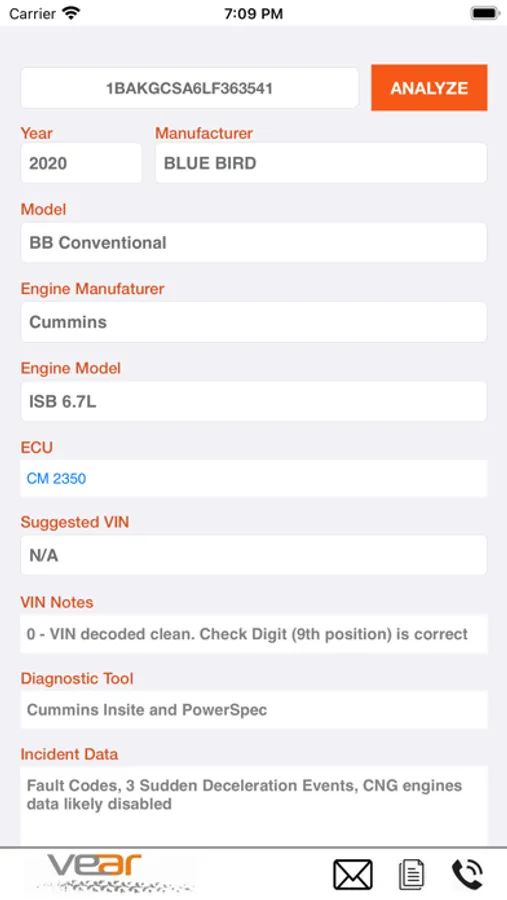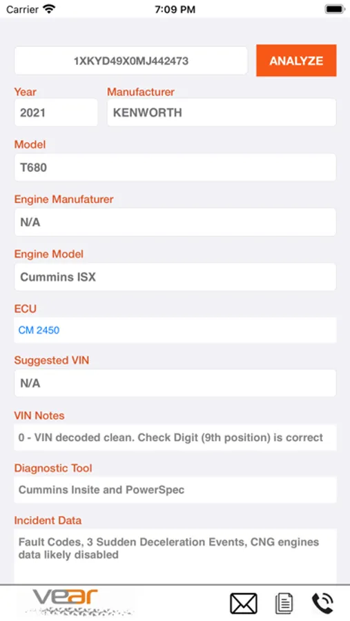 VINTrucks is a subscription based application. Version 7 represents a major improvement in VINTrucks. It will now decode any CFR conformant VIN. Its main purpose is still to decode heavy and medium duty truck Vehicle Identification Numbers (VINs) for truck manufacturers for the purpose of determining the year, chassis manufacturer, engine manufacturer, ECU family and validity. It will then list what software tool is needed to download the engine’s Electronic Control Unit (ECU) and if calibration and/or incident data is available. If incident data is available, it will give a brief description of the data. Major known issues are also shown in the notes section. Warnings for glider kits are also provided.