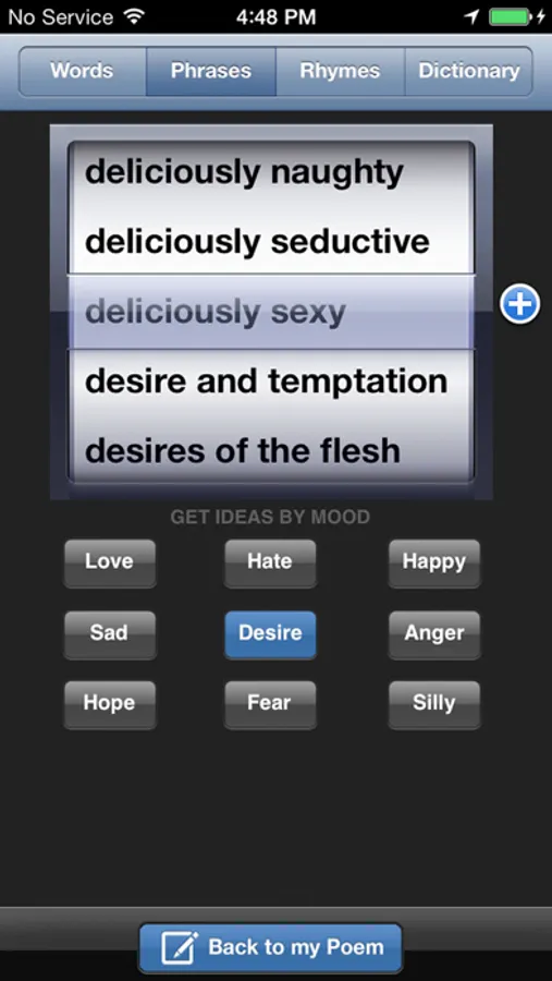 Generate ideas with our unique emotion based word and phrase generator. Feeling happy, angry, silly or over the top in love? Generate words and phrases that reflect your mood and save them for later use or inspiration.