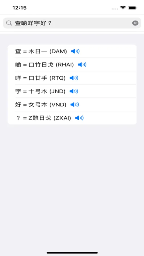 - 只要輸入你想查詢的一個或多個中文字,倉頡碼即可顯示,無需連上網路。