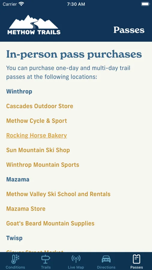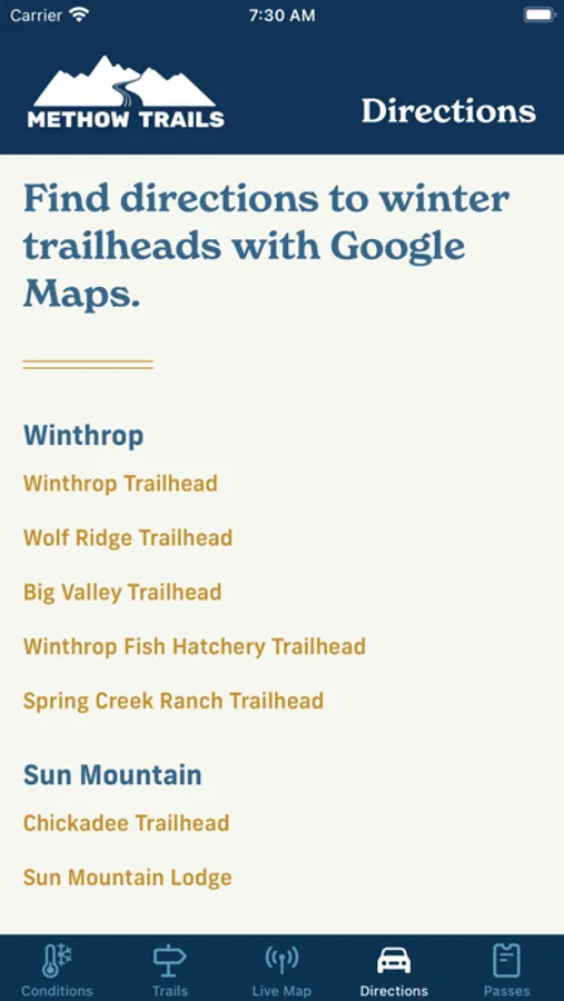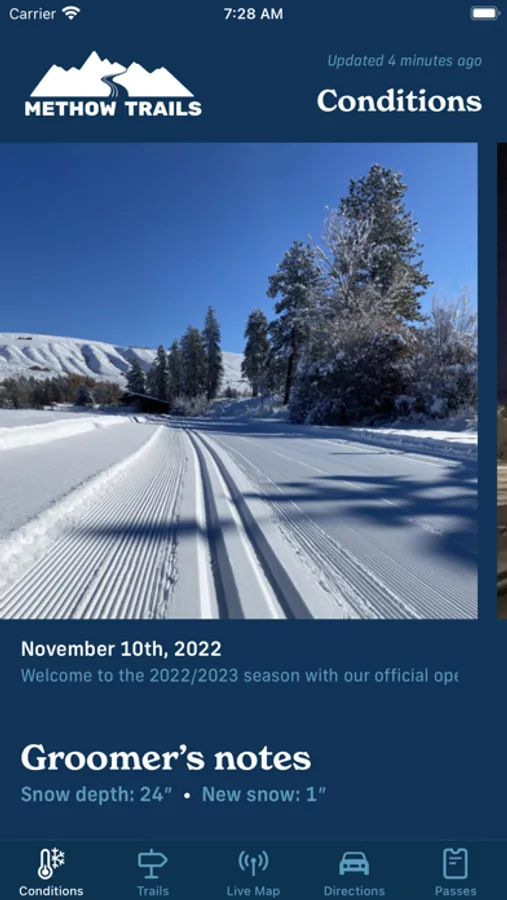 Methow Trails is the daily conditions report for trails in the Methow Valley. Methow Trails is the largest cross-country ski area in North America and this app covers year-round trail information with particular emphasis on the daily grooming and conditions of the cross-country ski trails in the winter. The app provides great year-round trail information for hikers, mountain bikers, horseback riders, trail runners, cross-country skiers, snowshoers, and winter fat-bikers.