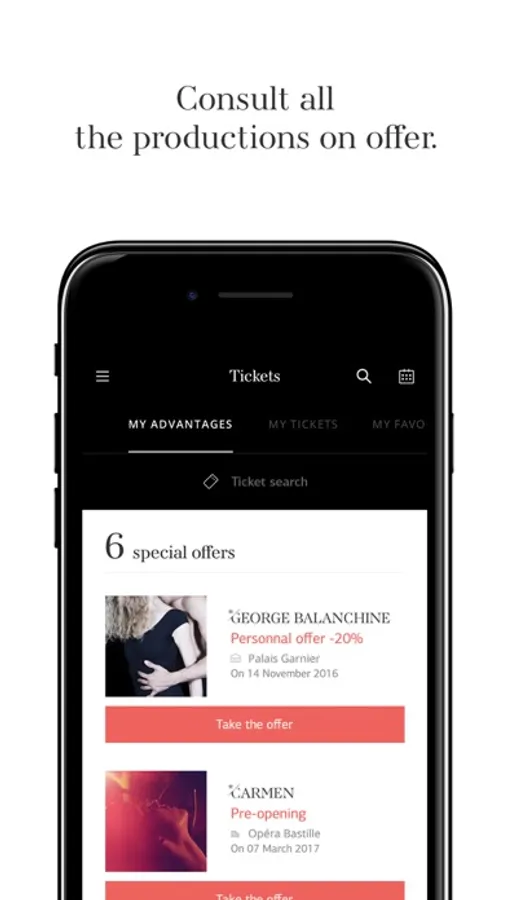 and the Palais Garnier and consult your personal offers via your Paris Opera account.