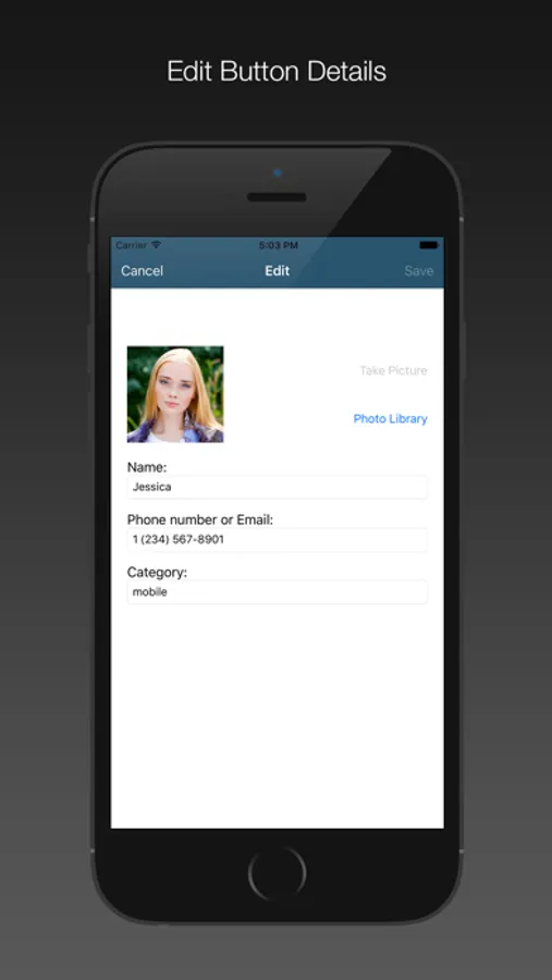 - Use the EDIT button and then tap a contact button to change name, phone/email and picture.