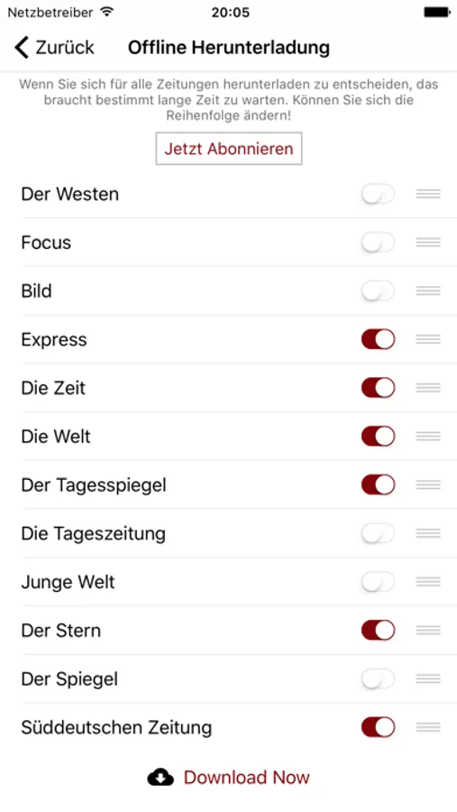 + Zeitungen beim Start automatisch synchronisieren (kann mit der Settings.app konfiguriert werden)