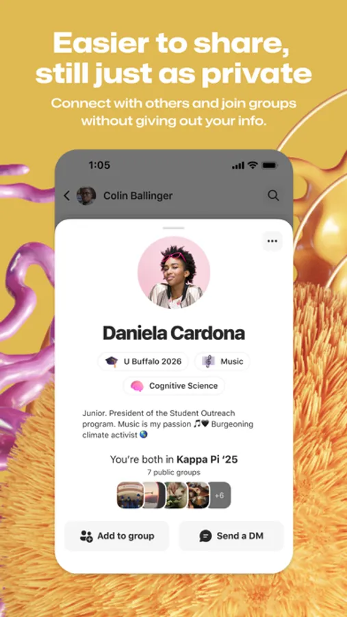 Add anyone to a group via their phone number or email address. If they don’t have the app, they can start chatting over SMS immediately.