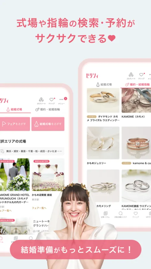 ■結婚式場から結婚指輪・婚約指輪・ドレス・エステなどの情報が充実&楽しく探せる